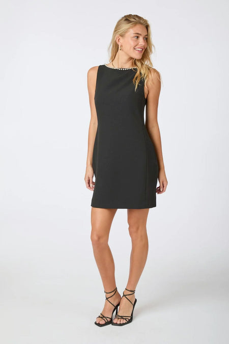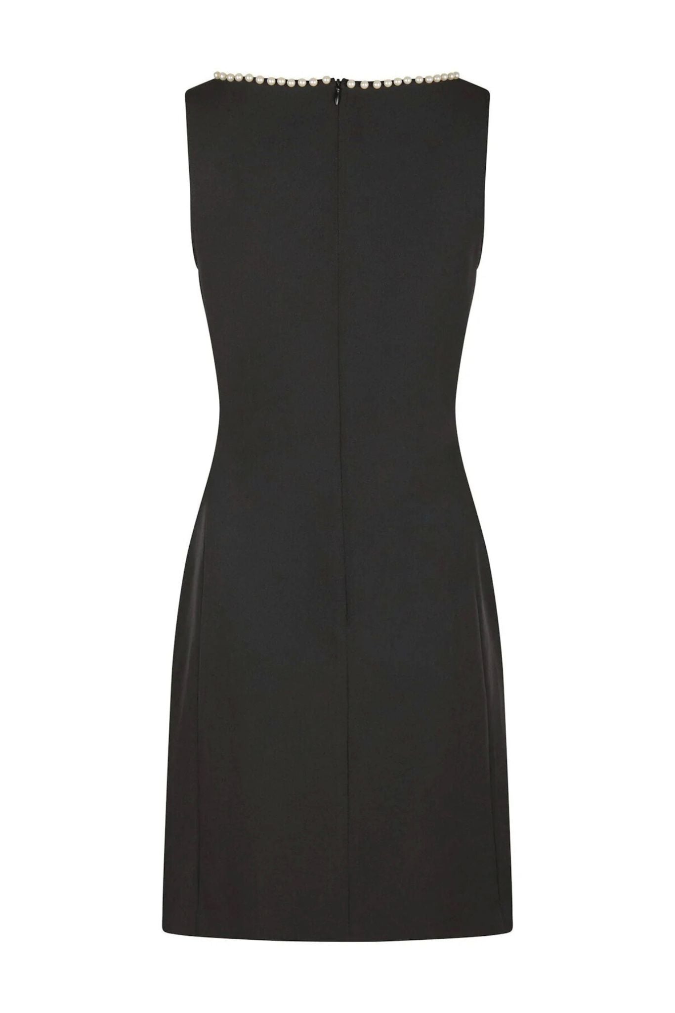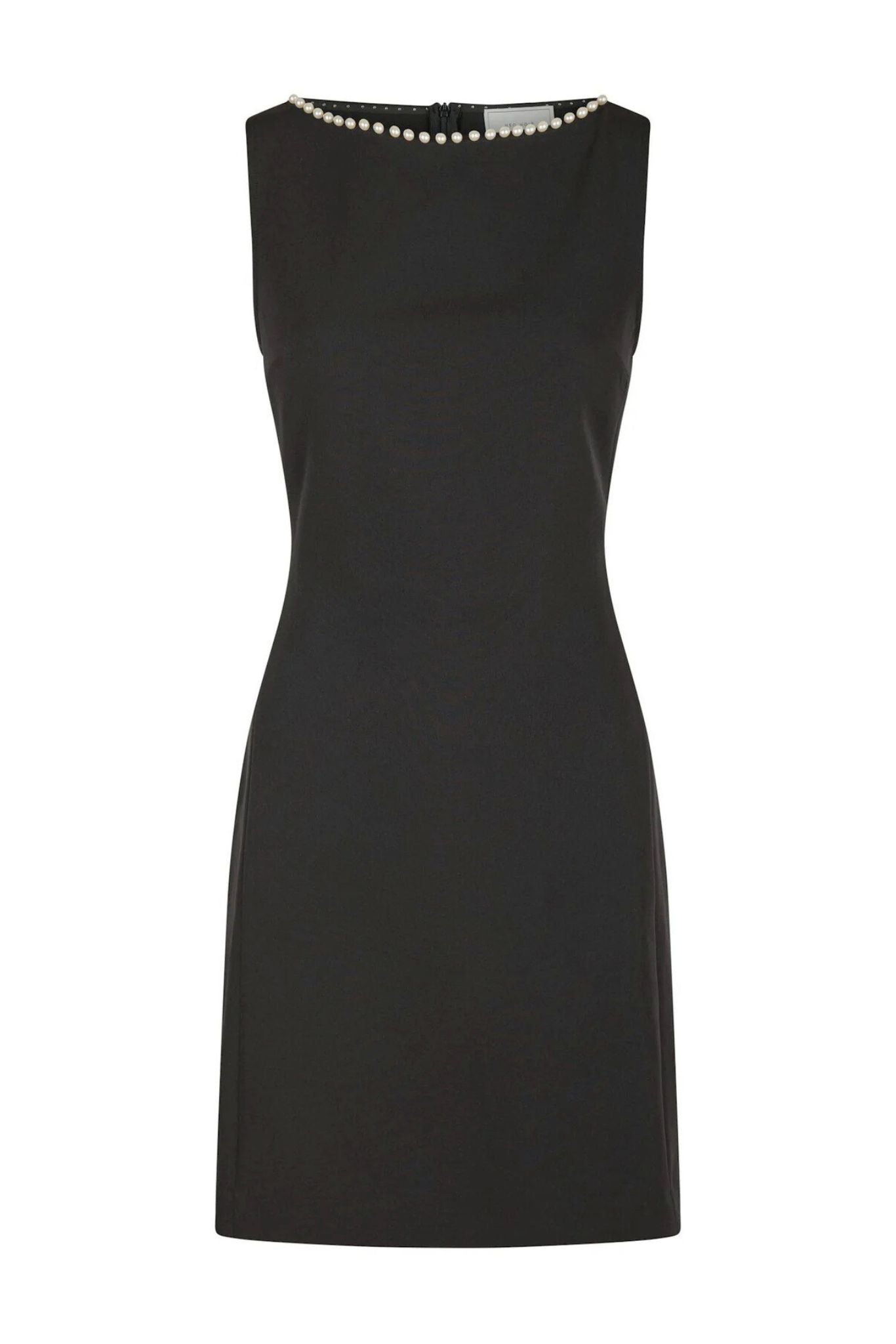 Kuna Suit Dress fra Neo Noir. Klassisk, elegant kjole fra Neo Noir - den perfekte "lille sorte". Kuna Suit Dress har en minimalistisk look med smal passform, boat neck og brede stropper. Kjolen har perledetaljer i halsen som gi en ekstra feminin touch.