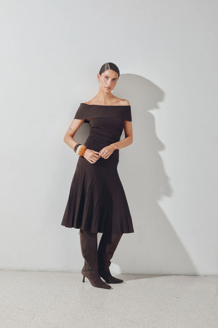 Althena Off Shoulder Knitted Midi Dress - Chocolate