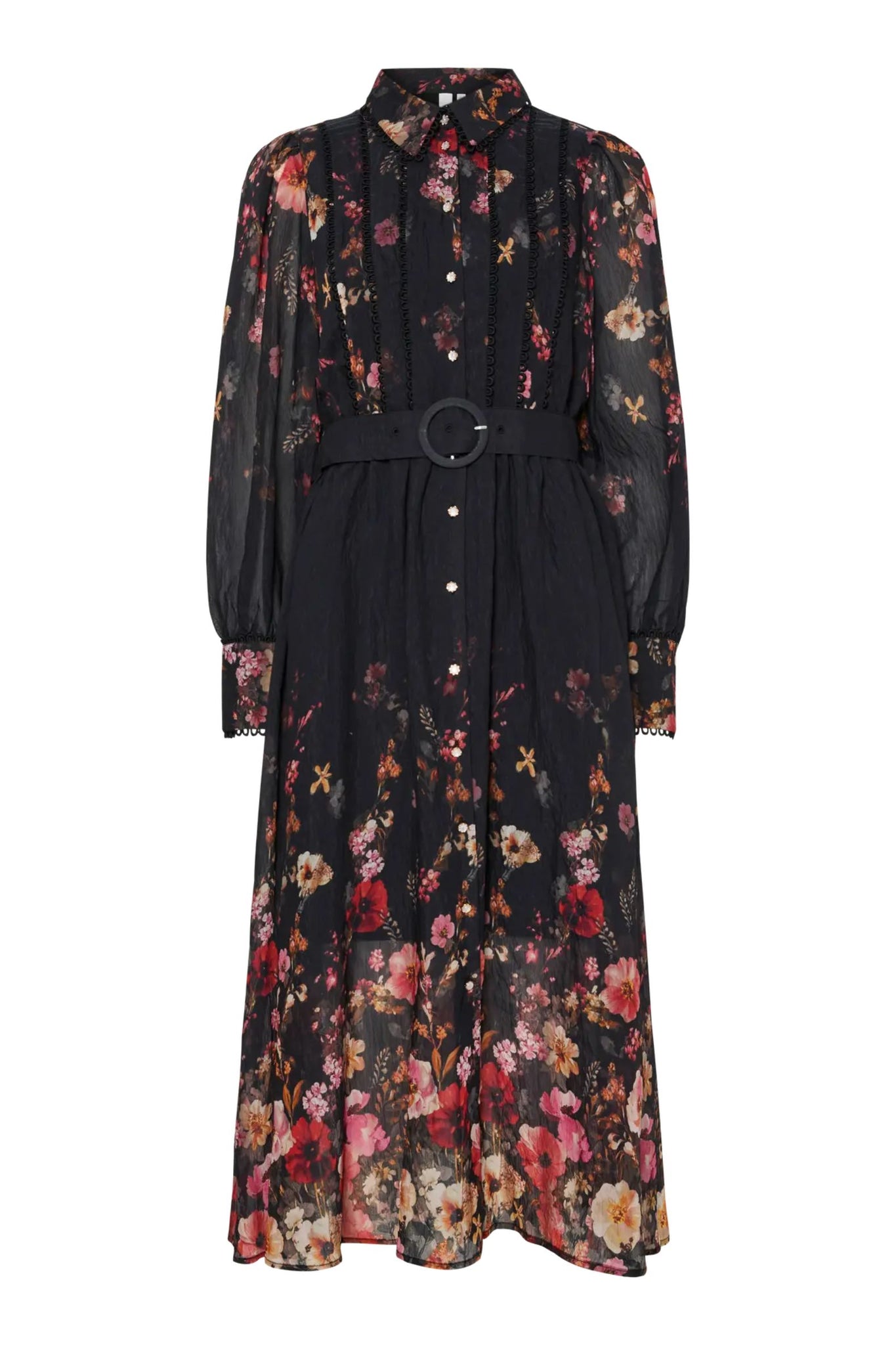 Yasromantica Ls Long Dress fra Y.A.S. Vakker maxikjole fra Y.A.S med romantiske detaljer. Yasromantica Ls Long Dress har klassisk krage, knappelukking langs fronten med dekorative perleknapper og lange ermer i et semitransparent materiale. Kjolen har en maxi lengde og belte i midjen for en flatterende silhuett. Yasromantica Ls Long Dress har fine detaljer og et nydelig blomsterprint.